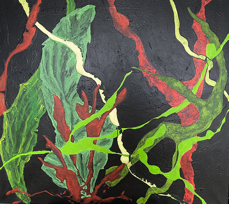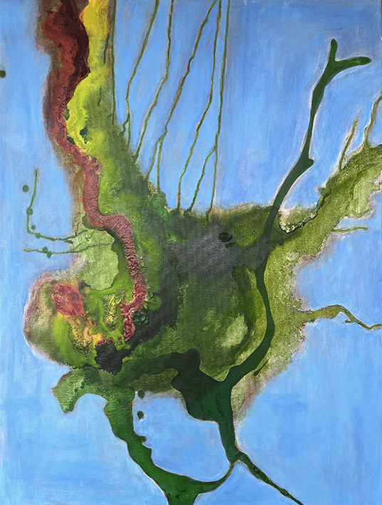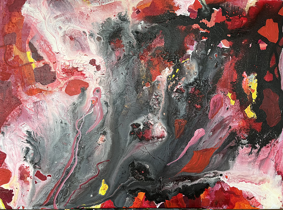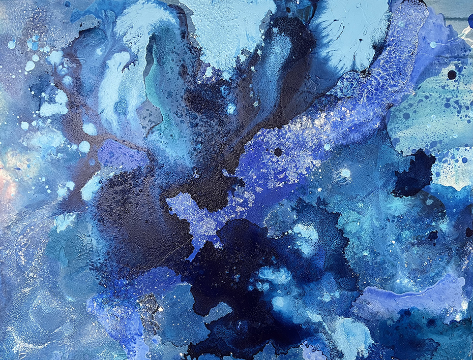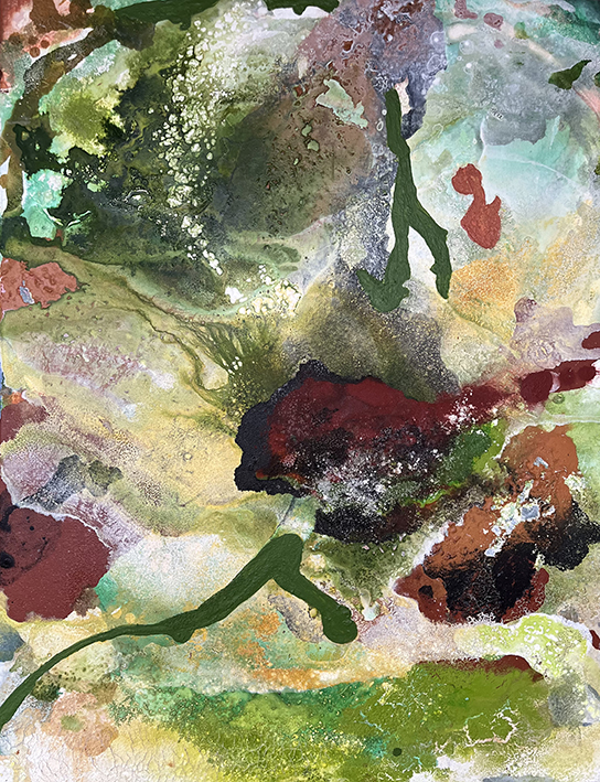 Jeg arbejder primært non figurativt i akryl, men anvender mange forskellige materialer, for eksempel: sprit, olie, salt, pastelfarver, lak, pigmenter, kul. Det er min store passion at få materialerne til henholdsvis at modarbejde og samarbejde med hinanden, så udtrykket får karakter af naturkræfters påvirkning af hinanden.